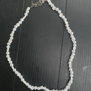Somrigt halsband i vitt och rosa. Gör även andra färger. Säljer matchande set med halsband, armband och ring. Pris går att diskutera vid köp av fler än 1🌸🥰