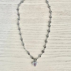 Oanvänt halsband med ett hjärta och rosa sten⭐️