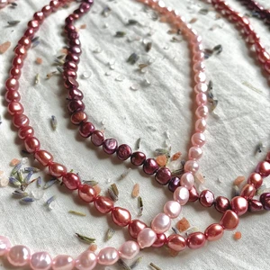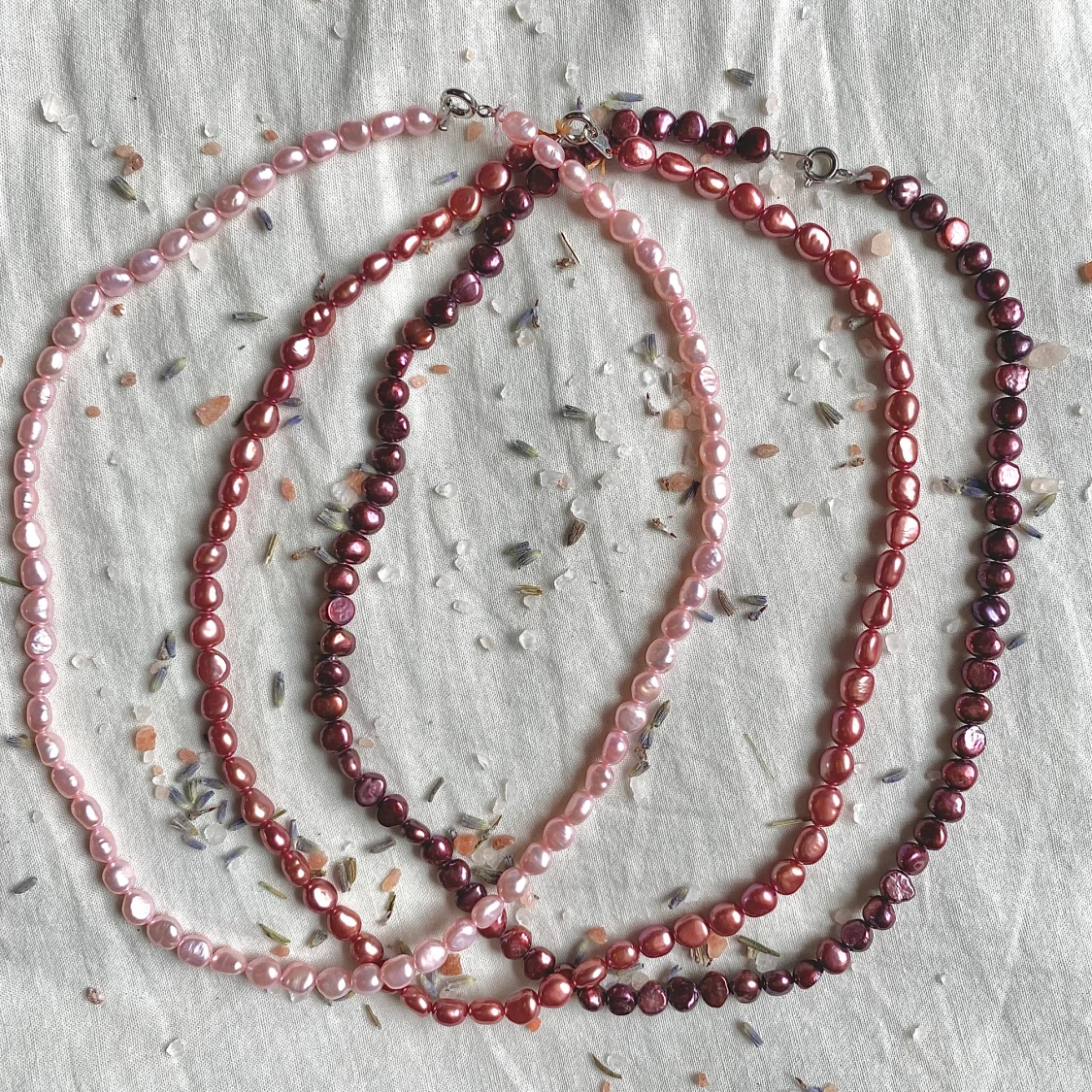 Pärlhalsband med äkta sötvattenspärlor färgade i tre olika rosa/röda färger🤍