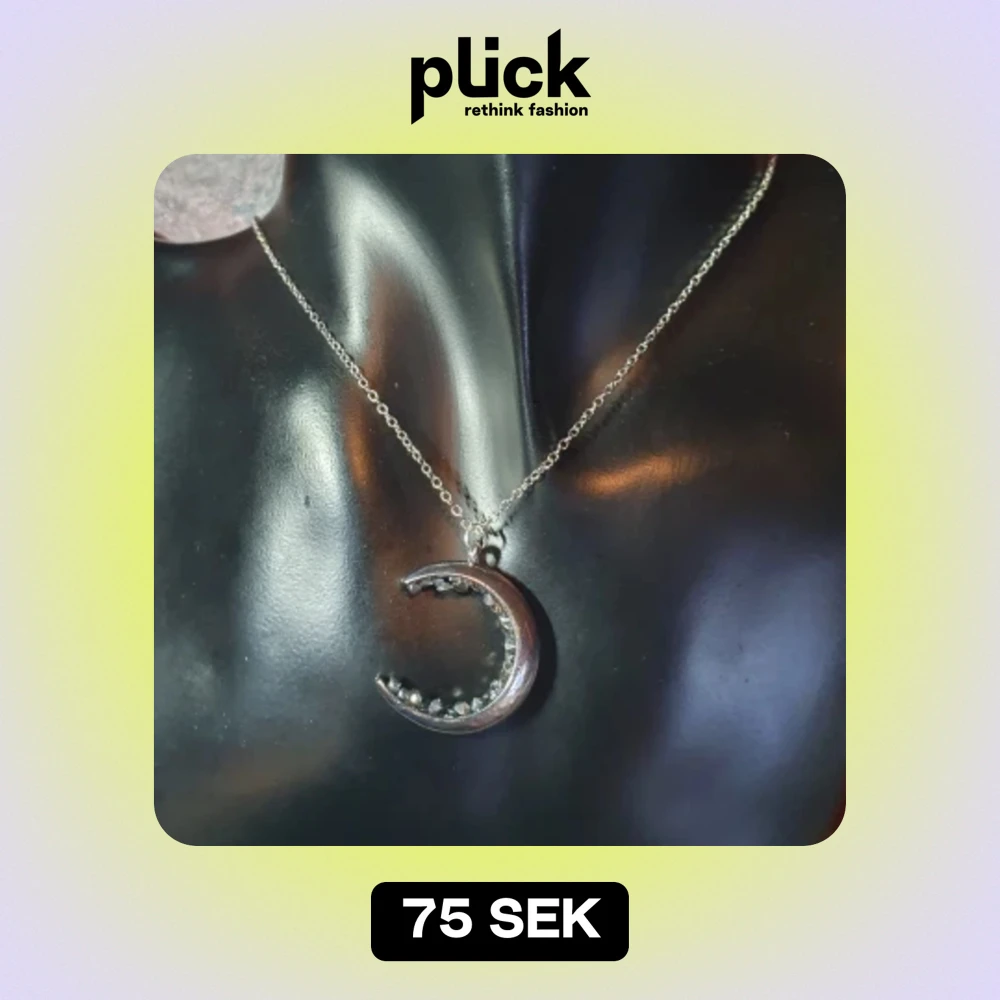 Snyggt halsband med måne silver. Mått på månen är ca 2.5 × 2.5 cm och kedjan är ca 46 cm + 5cm förlängningskedja ✨️Titta igenom alla mina upplagda och köp fler saker i bundle för att spara på frakten och få allt du köpt i ett och samma paket✨️