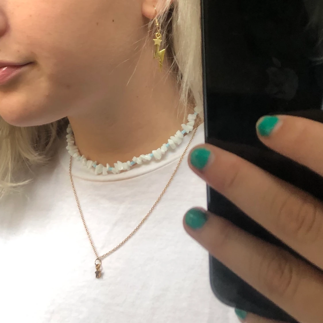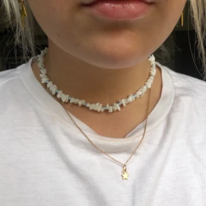 vitt halsband med blÄa ditaljer