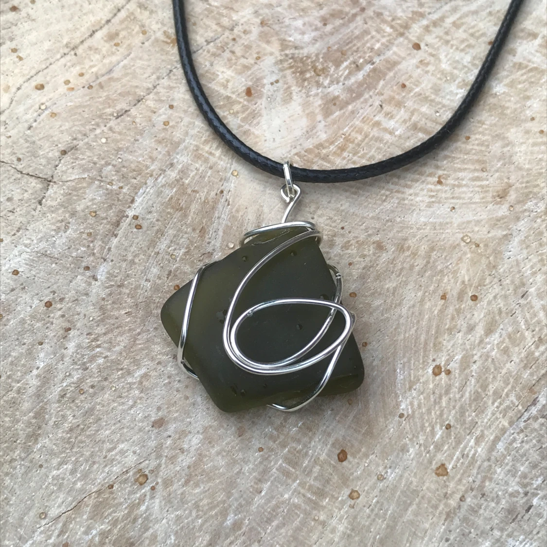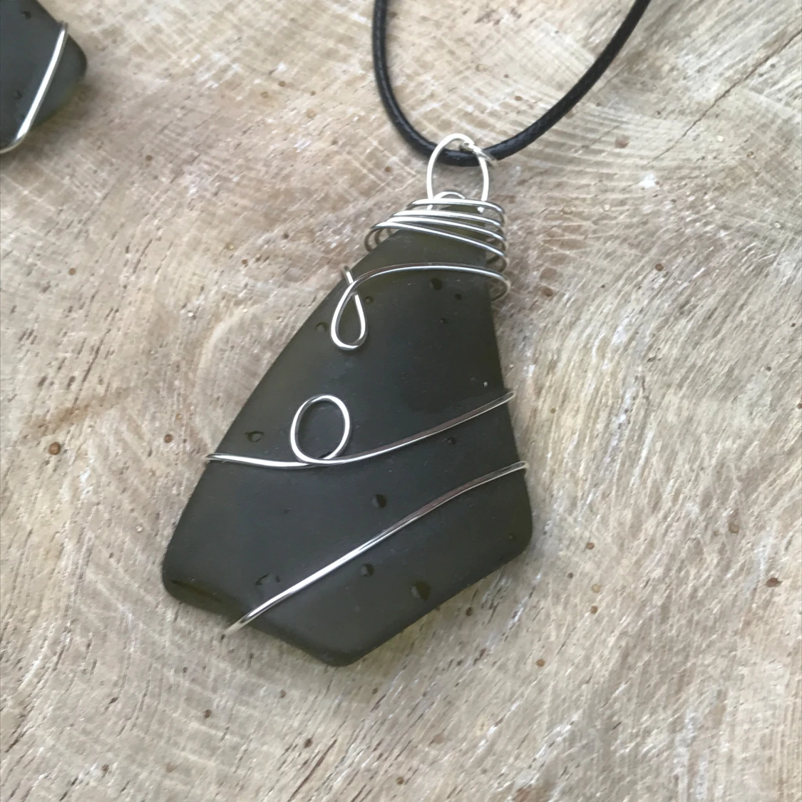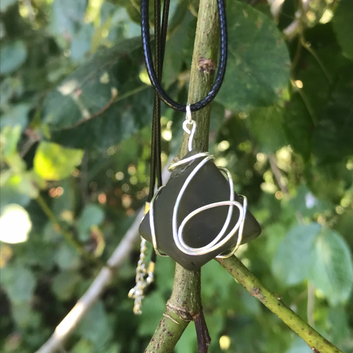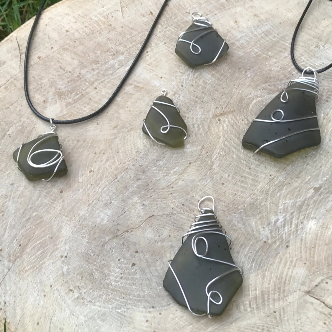 Vackra slipat glas halsband med silveromfattning. Finns i en massa olika färger och designer, priser varierar beroende på storlek: 80-150kr