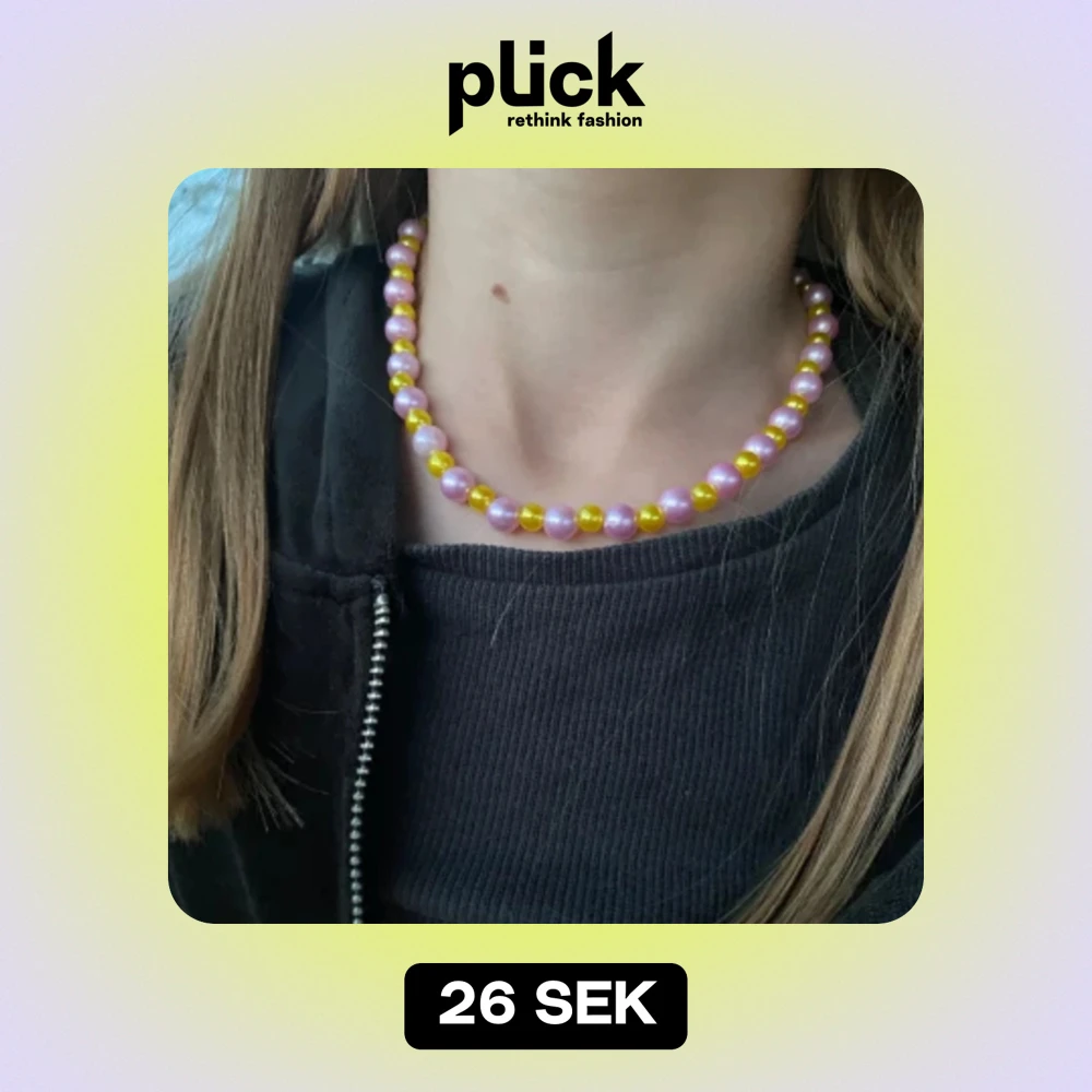 Vi säljer detta halsband med färgerna gul och rosa. Fina sommarfärger. Passar bara till barn!