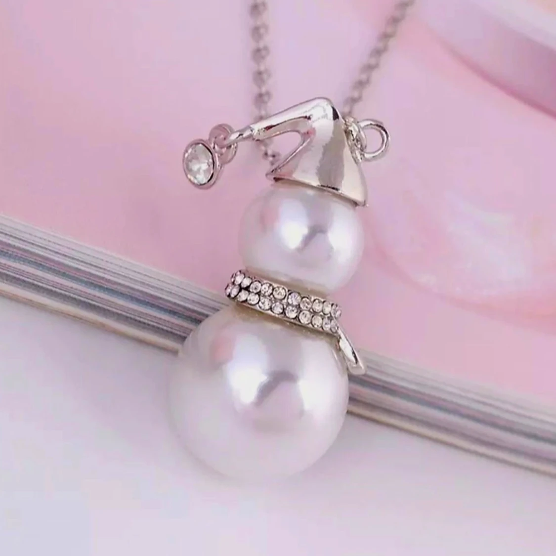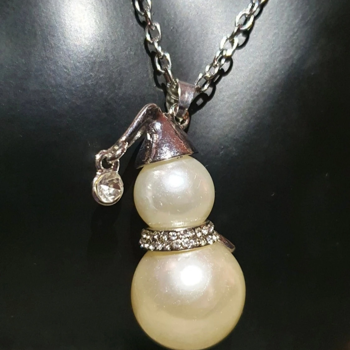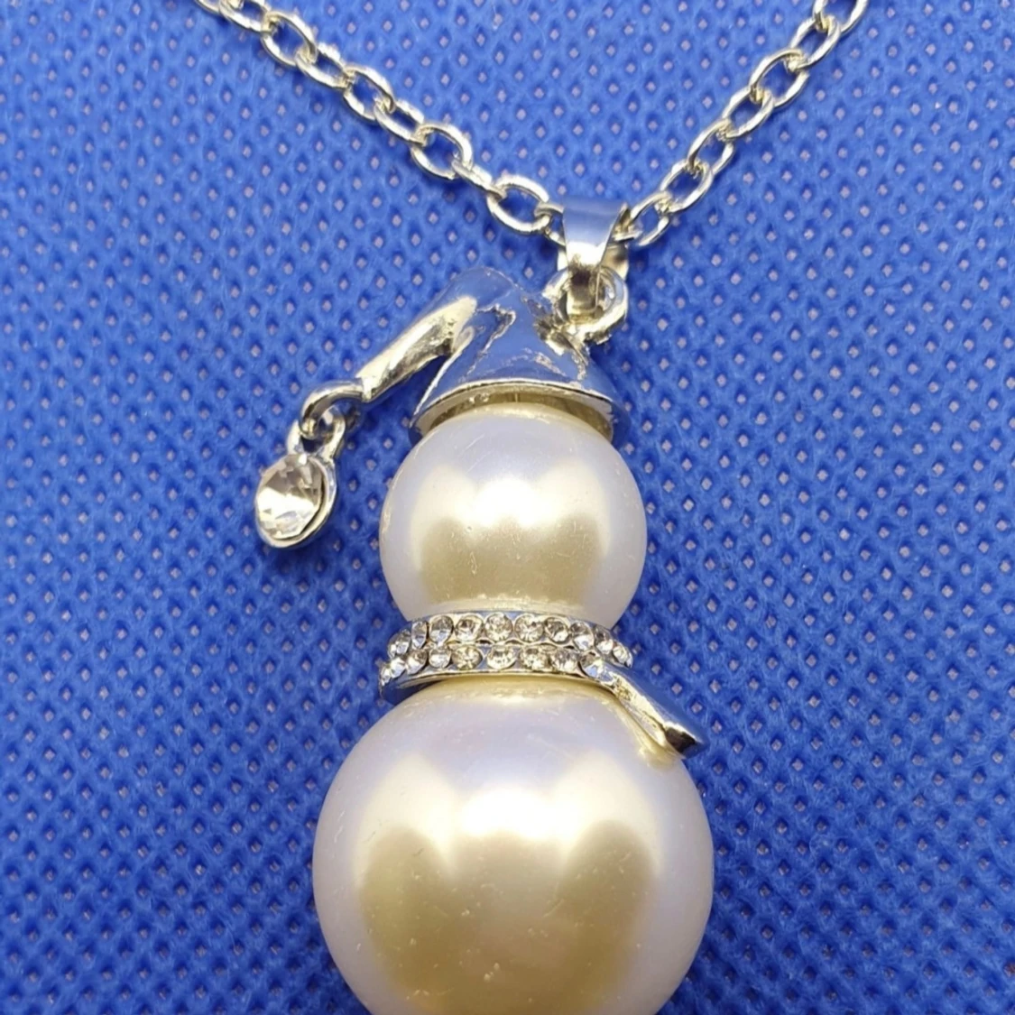 Riktigt fint halsband, med lång kedja 70 cm och ett hänge av pärlor som föreställer en snögubbe 4.5 cm. Hur fint som helst till jul.