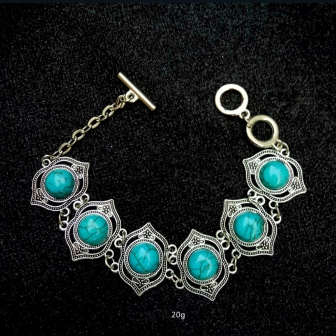 Helt nytt/oanvänt handgjort Smyckeset i vacker design med blå magnesitkristaller. Blå magnesit är en kraftfull kristall för att balansera starka känslor & kan hjälpa dig att återfå kontroll i stressfyllda situationer. De har även en kärleksfull, lugnande och fridfull energi som kan få finnas med dig under dagen. Är även kraftfull i manifestationer och ritualer samt avslappnande vid meditation och yoga. Primärt chakra: Kronchakra Sekundärt chakra: Tredje ögat