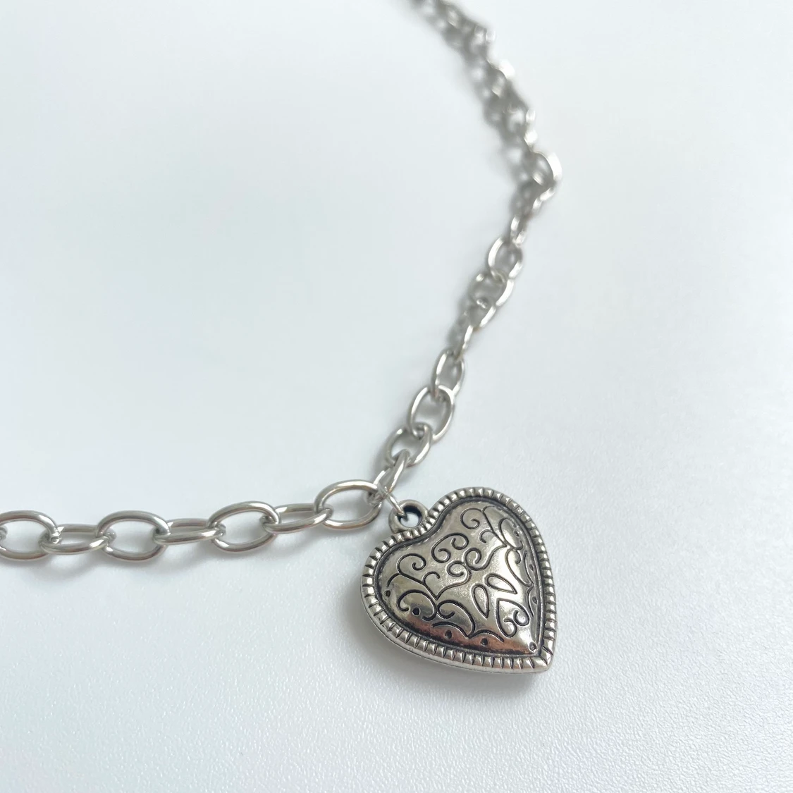 Silvrigt halsband med hjärt-berlock🤍