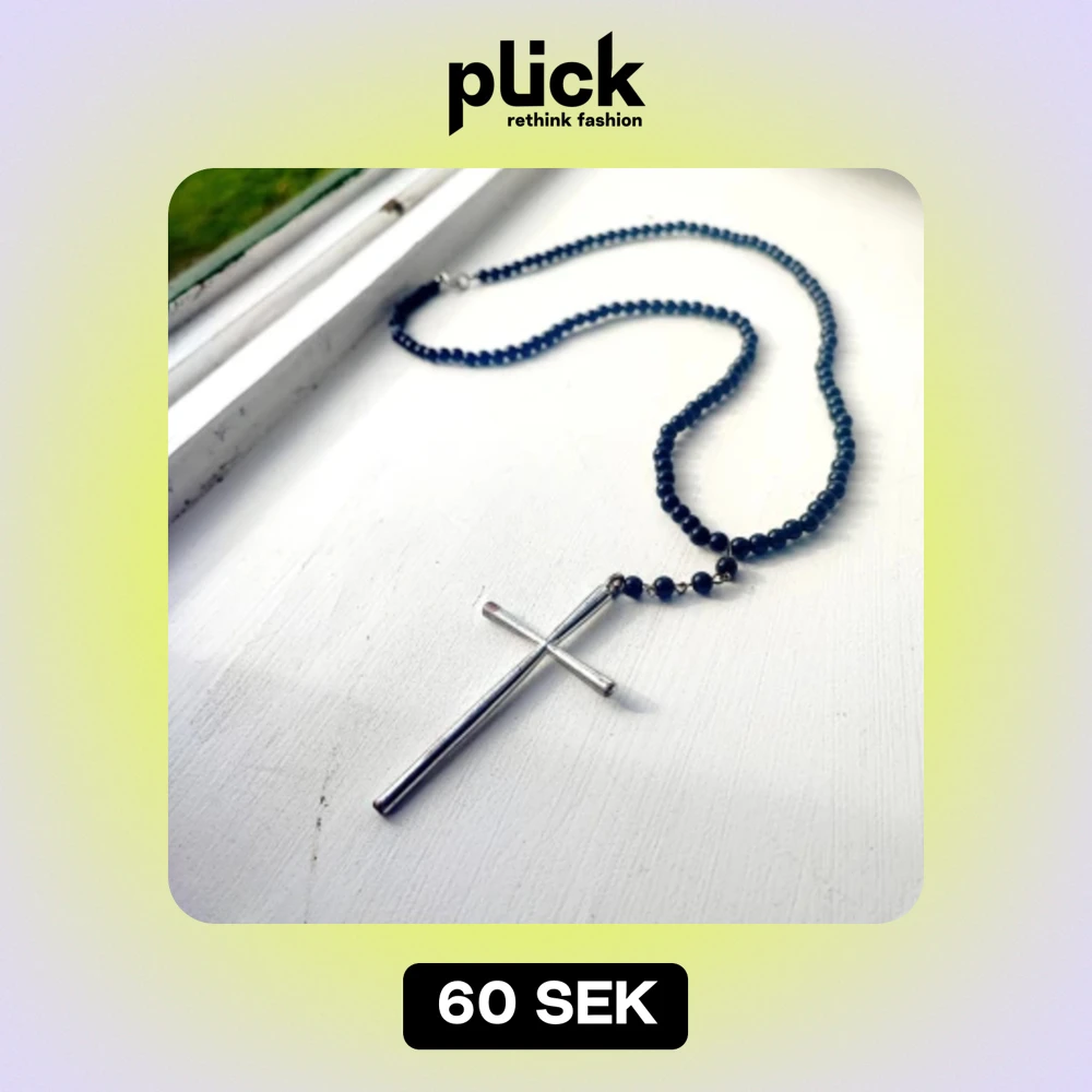 Super gulligt kors halsband i svart och silver, säljer då det inte är min stil längre, korset är en annan användt och gammalt men går säker att putsa till.