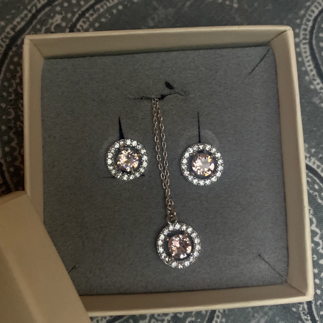 Säljer detta fina halsband tillsammans med liknande örhängen. Silver och rose i färgen. Helt nya, aldrig använda. Fråga om de något ni undrar över💕💕💘