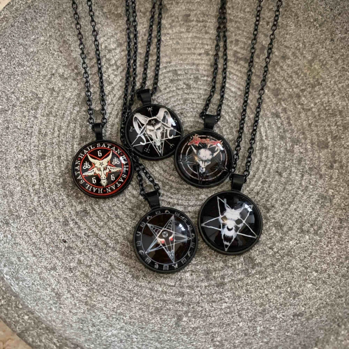 Över- och undernaturligt trevliga halsband. För vissa är presentation onödig. För er andra: Detta är Baphomet i ett pentagram - Typ För att slippa det omänskliga valet mellan dessa halsband så får man tre för endast 308.40:- eller 300:- jämnt.