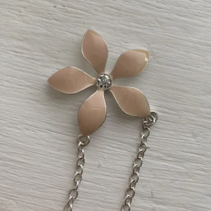 Oanvändt halsband men en blomma i beige och silver diamant i mitten. Går att justera längesen på halsbandet, från 45-50 cm. Inte äkta silver och inte äkta diamant. Vet inte om det är nickelfrit. Köparen betalar frakten.