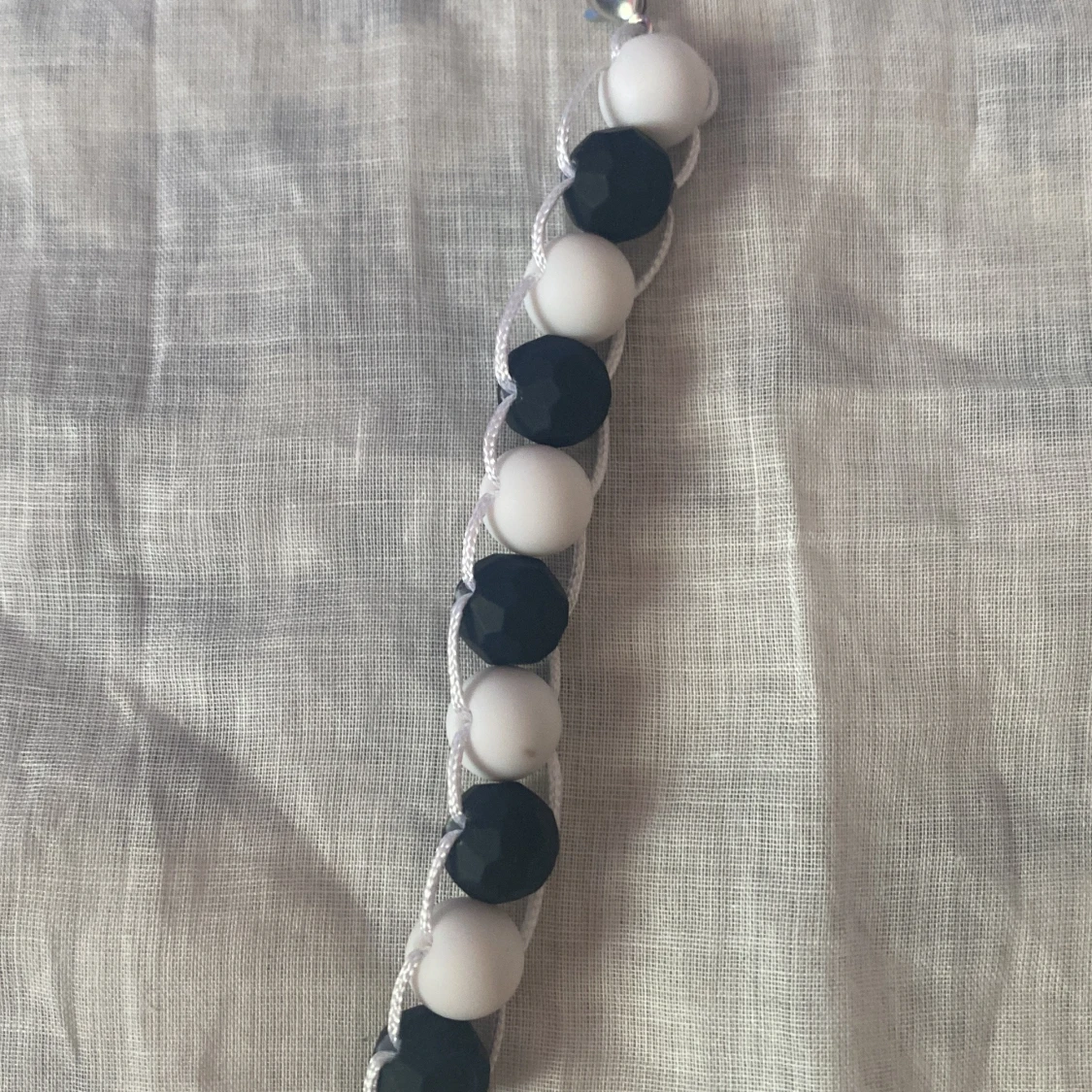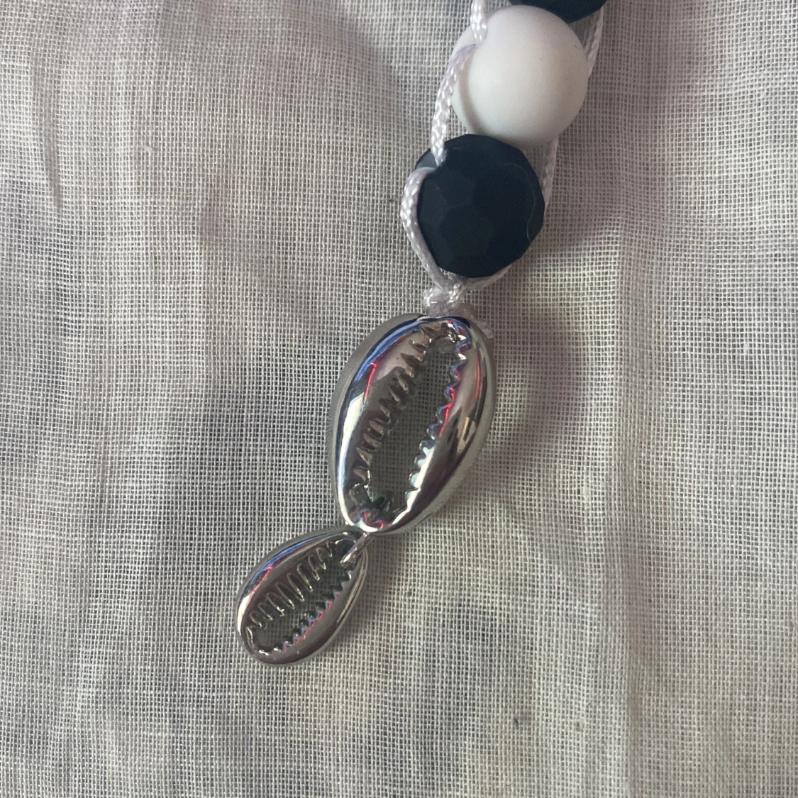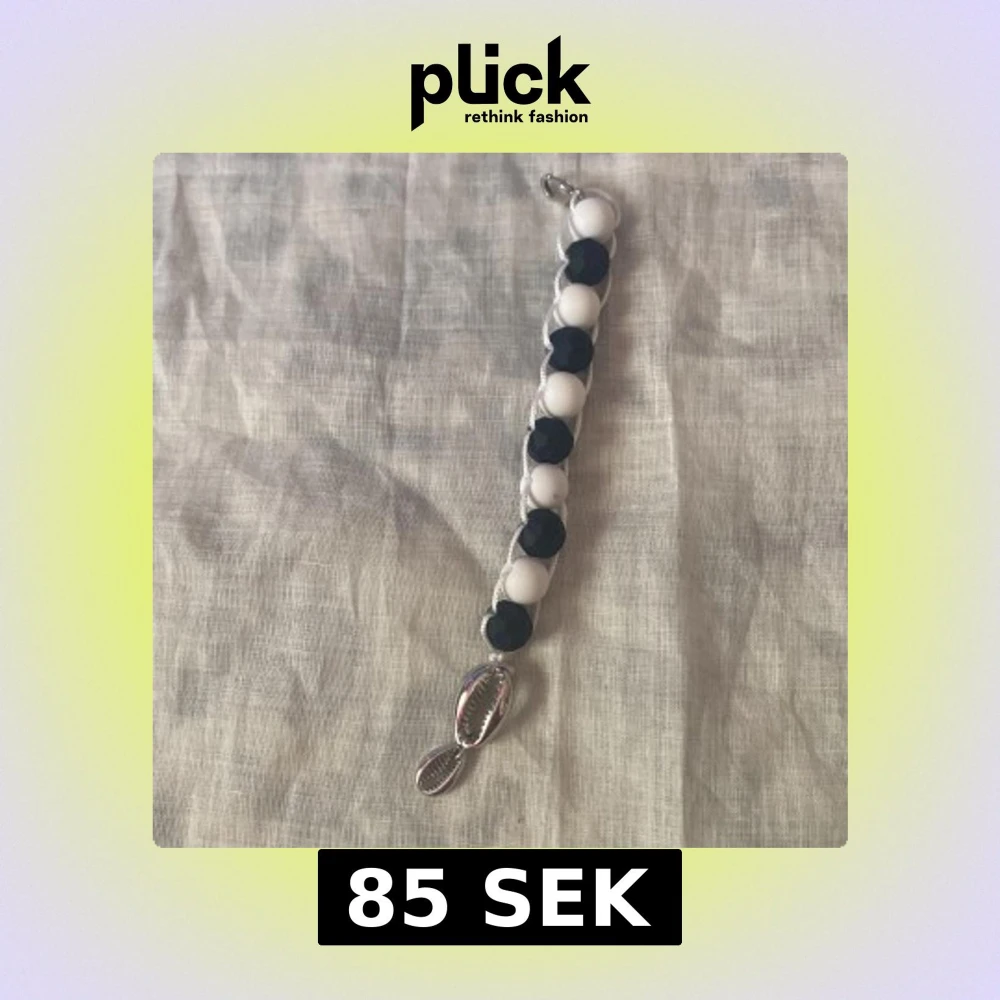 Unikt handgjort med varannan svart och vit pärla, flätat med vit tråd och avslutat med två silvriga snäckor. Perfekt för dig som gillar strandvibbar och coola detaljer. Smidig karbinhake i silverfärg för enkel på- och avtagning.