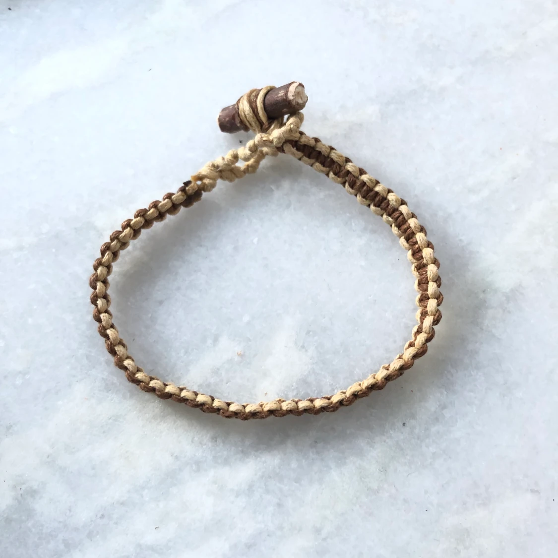 Handgjort makramé armband gjort av brun och vit vaxad bomullstråd. ( 17 cm ) Frakt: 12kr 🦋