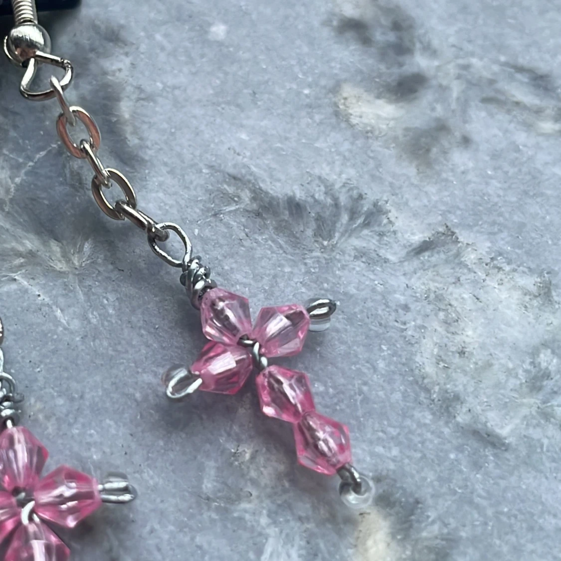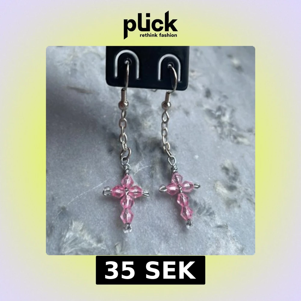 Handgjorda örhängen med rosa kors💕