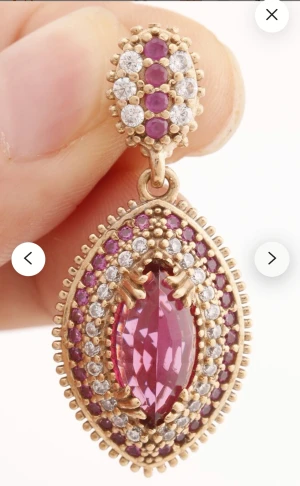 Handgjorda föremål Hängets bredd: 0,36 tum; Hängets höjd: 1,52 tum Material: Brons, Silver, Sten Ädelsten: Rubin Stil: MinimalistiskMycket vacker och elegant