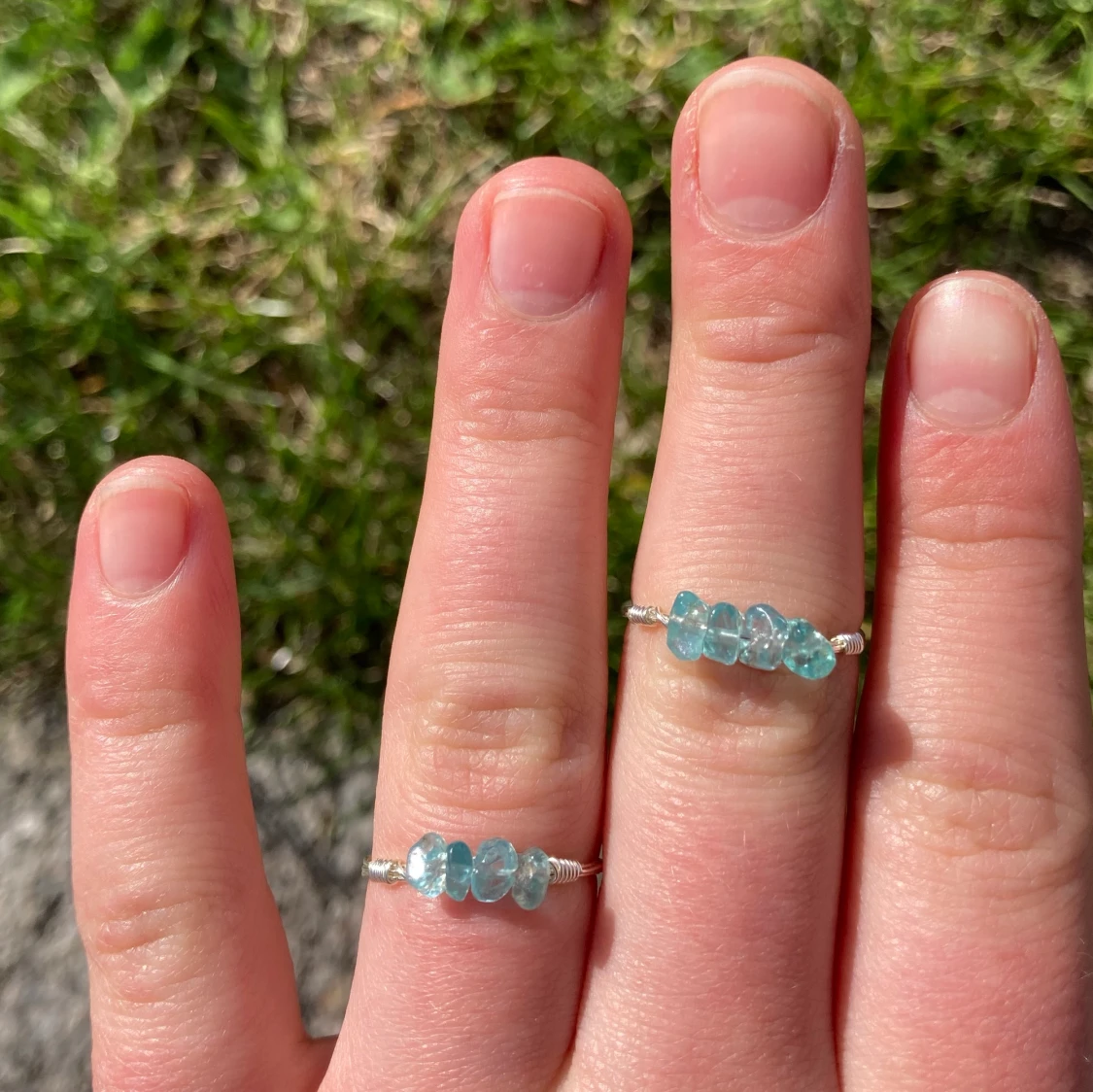 Dessa gulliga kristallringar Ă€r sÄÄ fina nu pĂ„ vĂ„ren och sommaren! De ger en liten extra fĂ€rgklick till din outfitđ Den havsblĂ„a kristallen heter apatitđ Apatiten löser upp likgiltighet, den sĂ€gs hjĂ€lpa dig att komma ur tillfĂ€lliga depressioner och negativitet. Apatiten stöder dig att komma tillbaka pĂ„ rĂ€tt spĂ„r och pĂ„ sĂ„ sĂ€tt uppnĂ„ positiva resultat!đ€© Obs! Frakt tillkommer