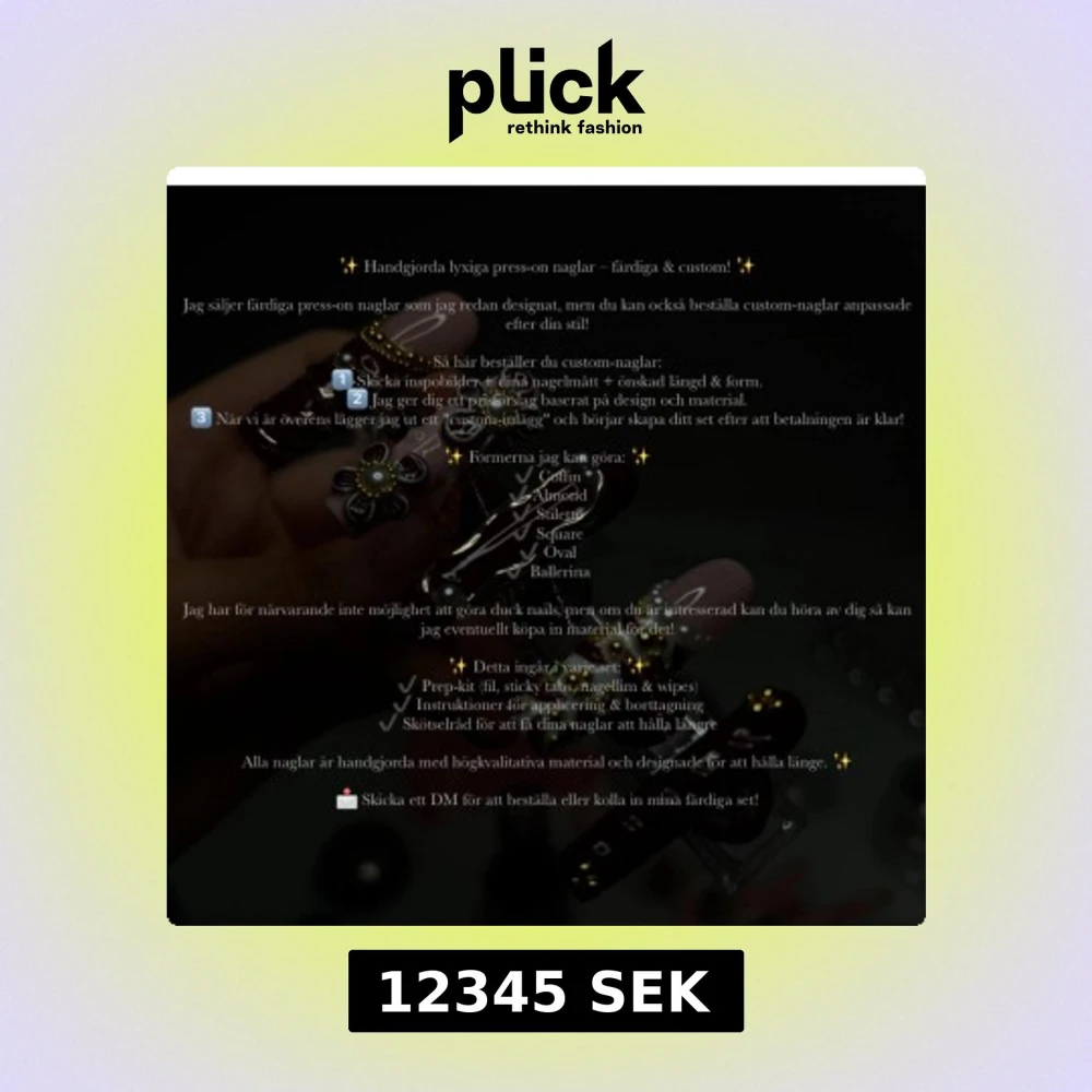 Hoppas det gick att läsa texten 😊Tveka inte att höra av er vid funderingar/frågor även om ni inte är helt 100 på att ni vill köpa, är glad att vara till hjälp💗 Undrar ni vilka charms & glitter & andra nageldekorationer jag har går det också bra att fråga så kan jag ta bild 🥰Är de någon charm du vill ha som jag inte har kan jag tänka mig köpa in 🫶Naglarna i bilderna är några urval av de naglar som jag gjort tidigare 💅