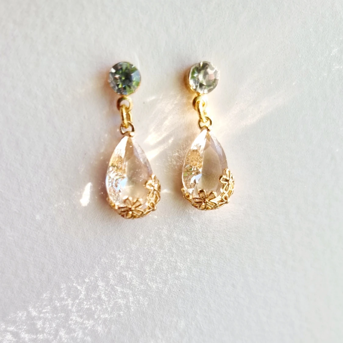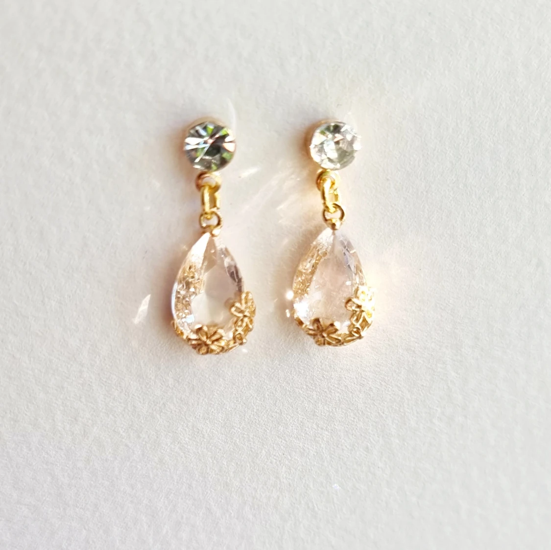 Handgjorda örhängen ● Material- kristall, metal ●Örhängeskrokar - rostfritt stål ●Längd -2,5cm
