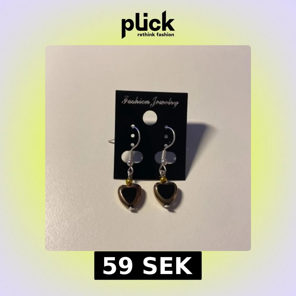 Snygga örhängen med hjärtformade hängen i svart och guld. De har en liten guldfärgad pärldetalj ovanför hjärtat och silverfärgade krokar. Perfekta för att ge din look en söt och trendig touch.