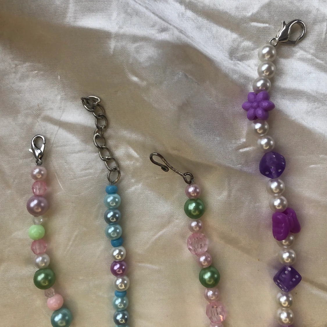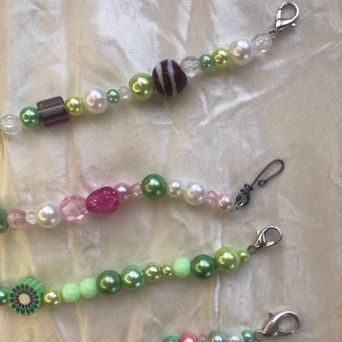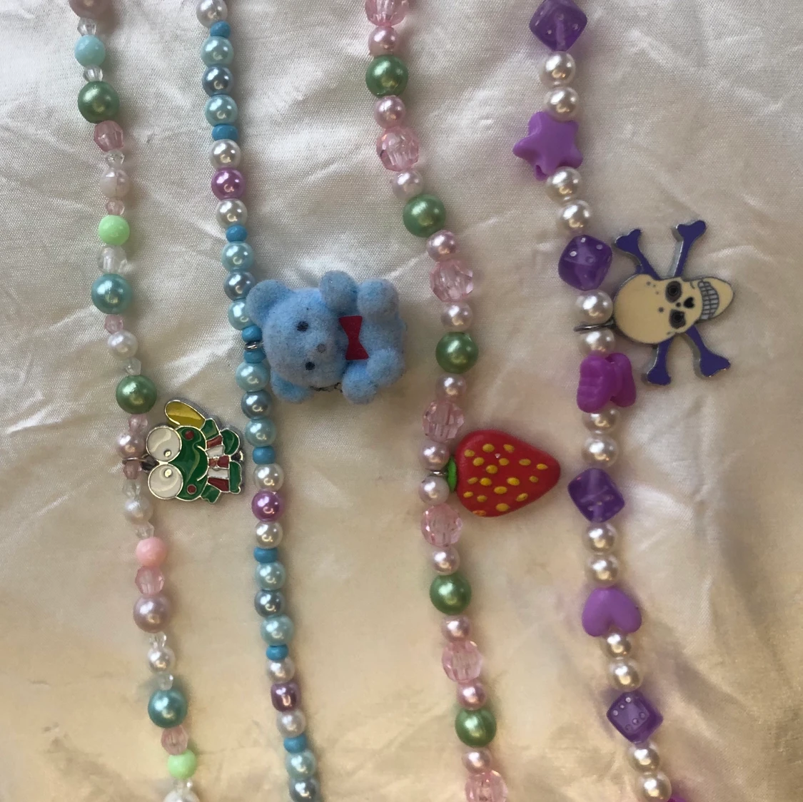 så söta pärlhalsband med blandade pärlor och olika coola berlocker🧸🍓🐸 85 kr/ st, 2 för 150, frakt tillkommer på 12 kr oavsett antal halsband🌸🍄🌻 kolla in min sida för liknande annonser:) dma vid frågor!