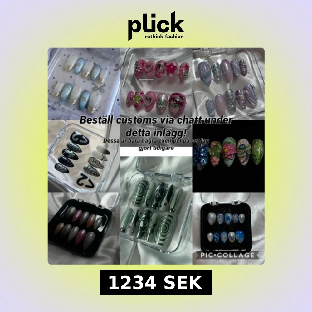 Beställ skräddarsydda lösnaglar efter dina önskemål! Hör av dig till mig via dm med inspobilder + mått & jag kommer med ett pris, man får med instruktioner & appliceringskit💗Gör alla längder/former! Utmana mig gärna med svåra designs! Kan göra alla stilar! Har flera års erfarenhet 😊 Tveka inte att ställa frågor! Kan göra mer svåra designs men även basic! Alla naglar handgjorda av mig🥰