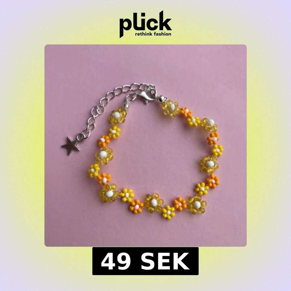Supergulligt armband med små blommor i pärlor, mixat i gult, orange och vitt. Armbandet har en silverfärgad kedja med stjärnberlock och justerbar längd. Perfekt accessoar för att liva upp din outfit med somrig vibe!