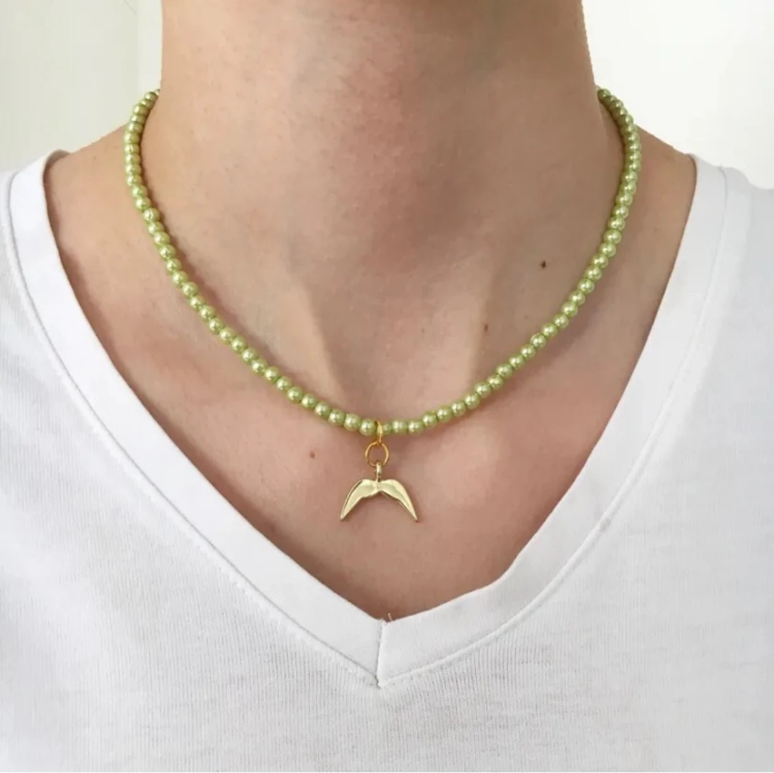 Handgjort halsband🌸 Den är elastisk, alltså lätt att sätta på sig osv💕