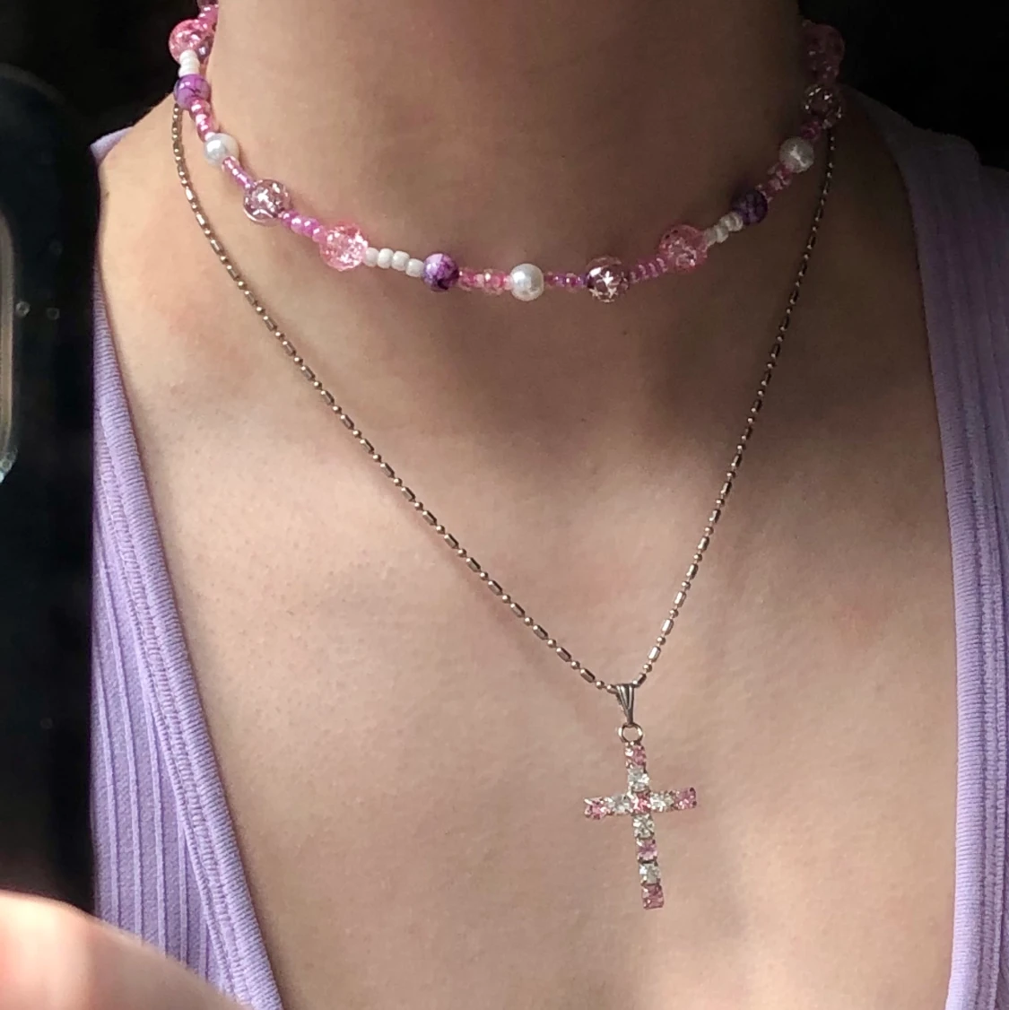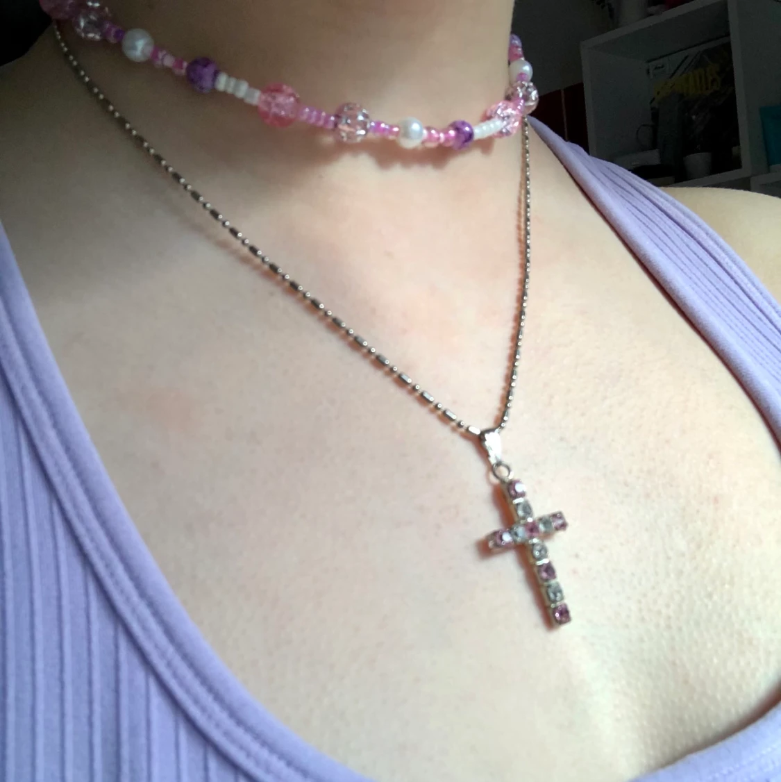 Nu säljer jag detta handgjorda halsband. Tråden är elastisk så går att stretcha ut ganska mycket. 90 kr + frakt 💕💕Vill du designa ditt egna armband eller halsband så är det bara att kontakta mig i pm och så kan vi komma överens om något☺️