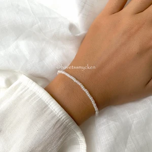 Pärlarmband av skimrande glaspärlor i vit nyans. Perfekt att kombinera med andra smycken! Armbandet är ihopsatt med hållbar elastisk tråd och passar de flesta handleder.