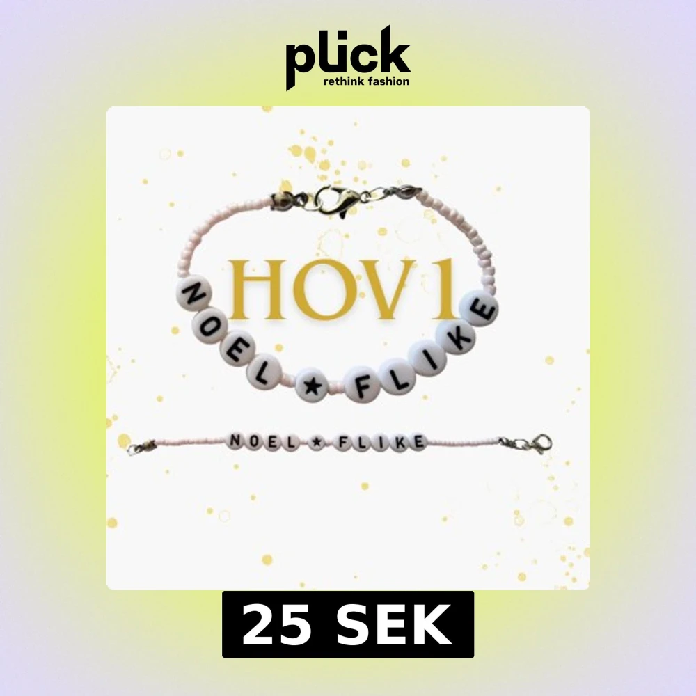 Handgjort armband med vita runda bokstavspärlor som bildar namnet på Hov1:s bandmedlem 'NOEL FLIKE'. Armbandet är gjort av elastisk tråd och metallspänne. Perfekt accessoar för dig som gillar personliga smycken och Hov1. Anpassar längd, namn/ord, färger med mera utefter dina önskemål. Se mina övriga annonser och passa på att få rabatt vid köp av flera varor samtidigt. Obs!!! Accepterar ej prutande. 25 kr är ett fast pris.