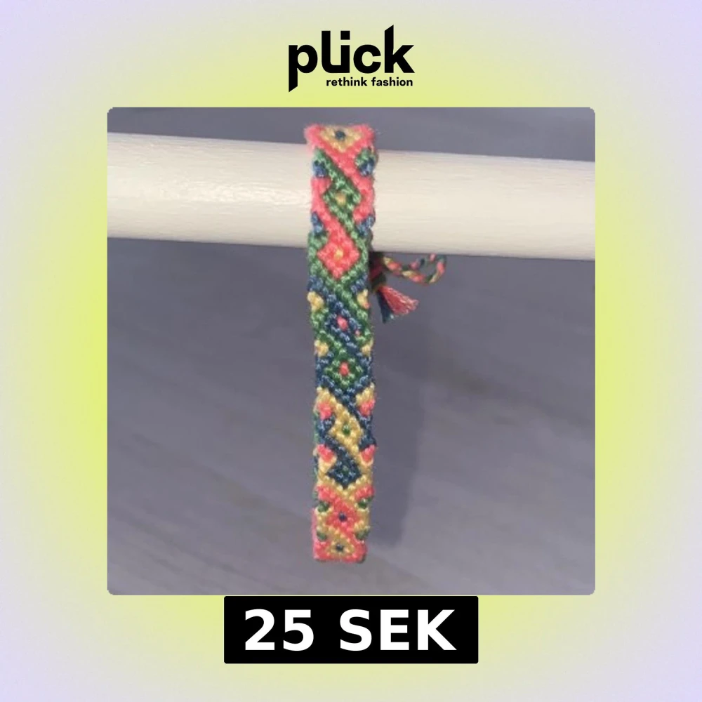 Ett fint handgjort armband i fina färger: rosa, grön, gul och mörk blå. 💋 Finns endast 1 armband tillgängligt i denna färg och mönster! ❗️kontakta innan köp, Swisha privat för billigare pris (inget köpskydd)❗️
