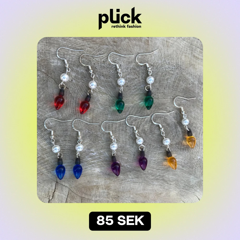 Vackra jul-örhängen av vita pärlor och färgade glödlampor🎄De finns i röd, blå, gul, lila, grön och röd-grön💡