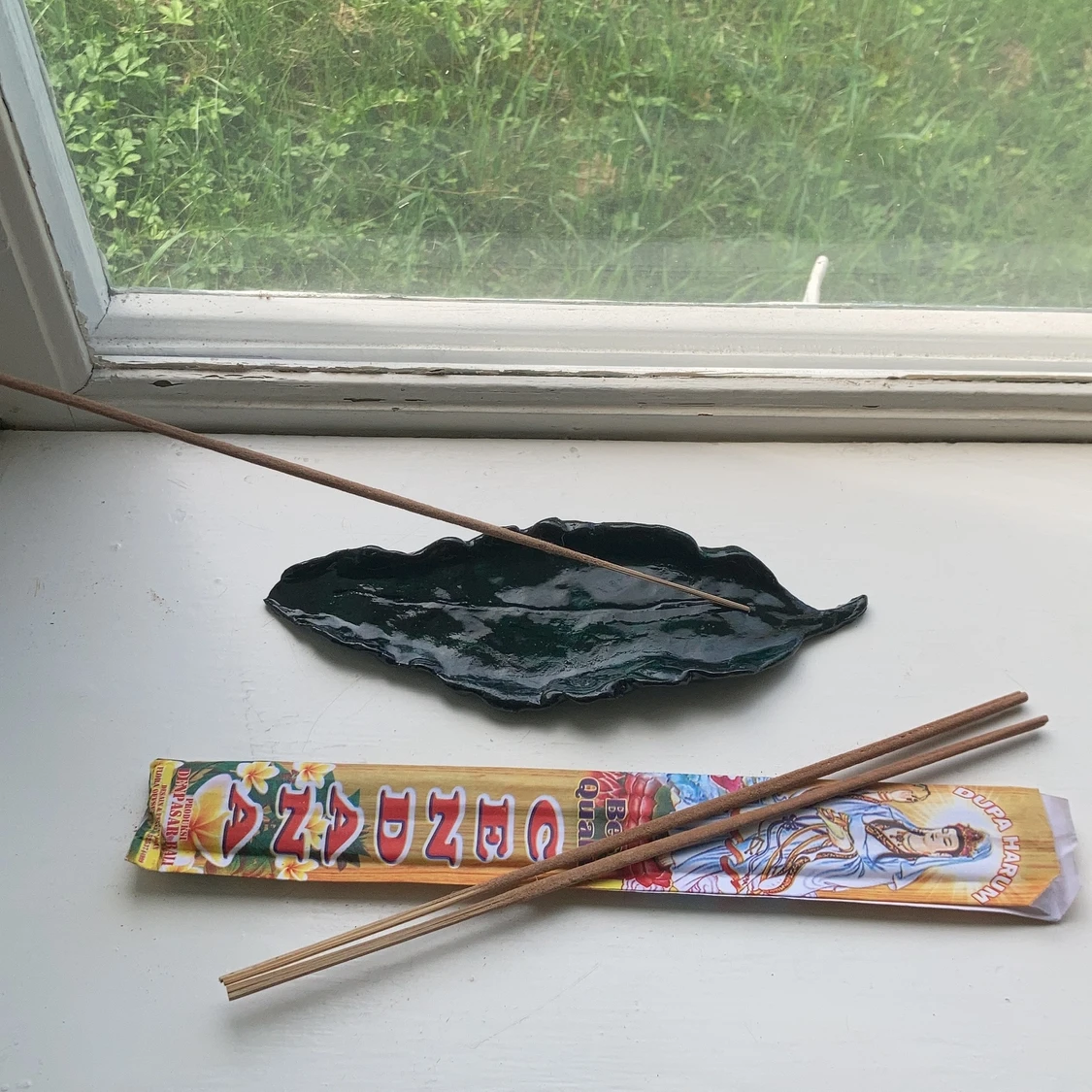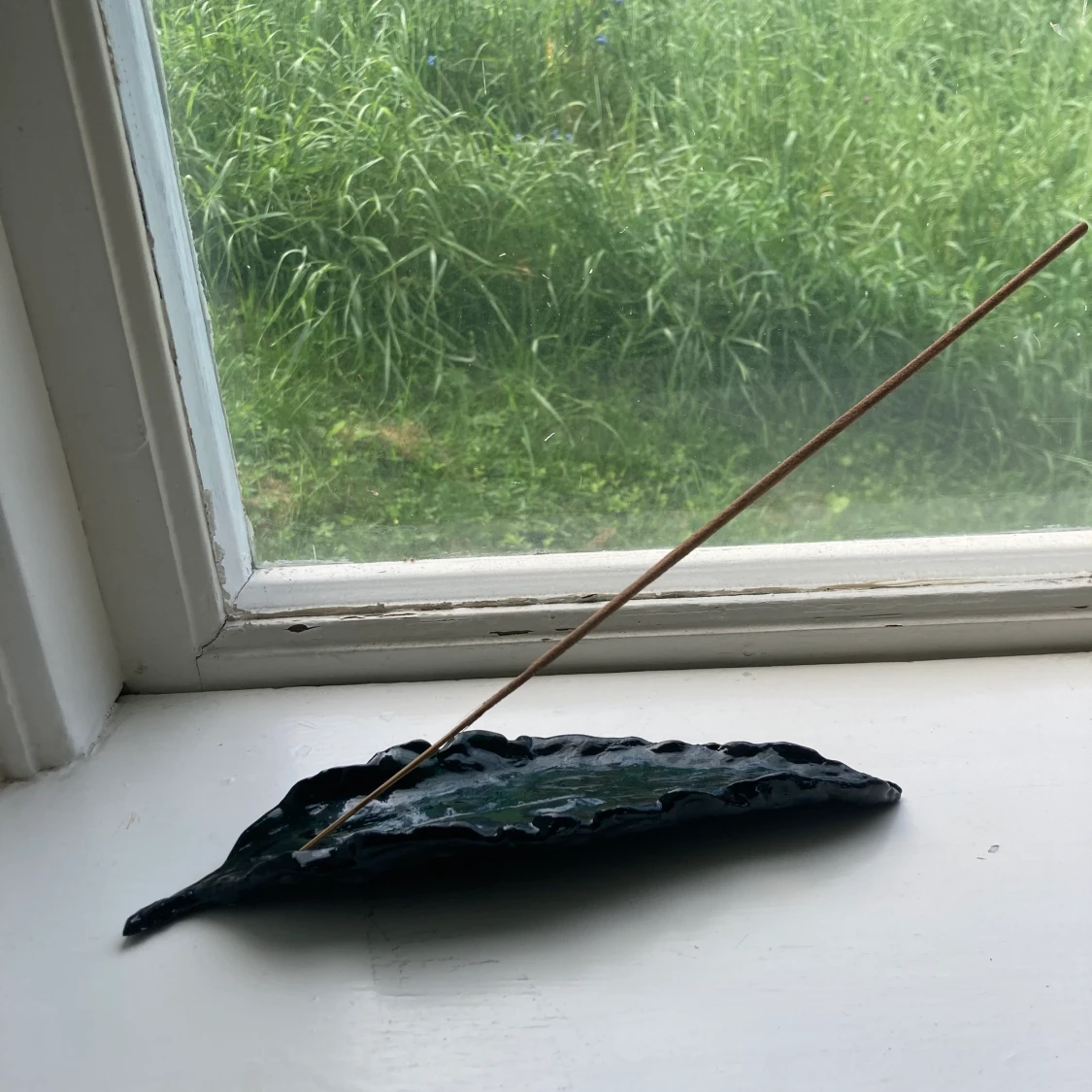 Säljer en handgjord rökelsehållare som är glaserad. Den är inte helt perfekt men ändå charmig! Med den får man 3 st rökelsepinnar gratis :)
