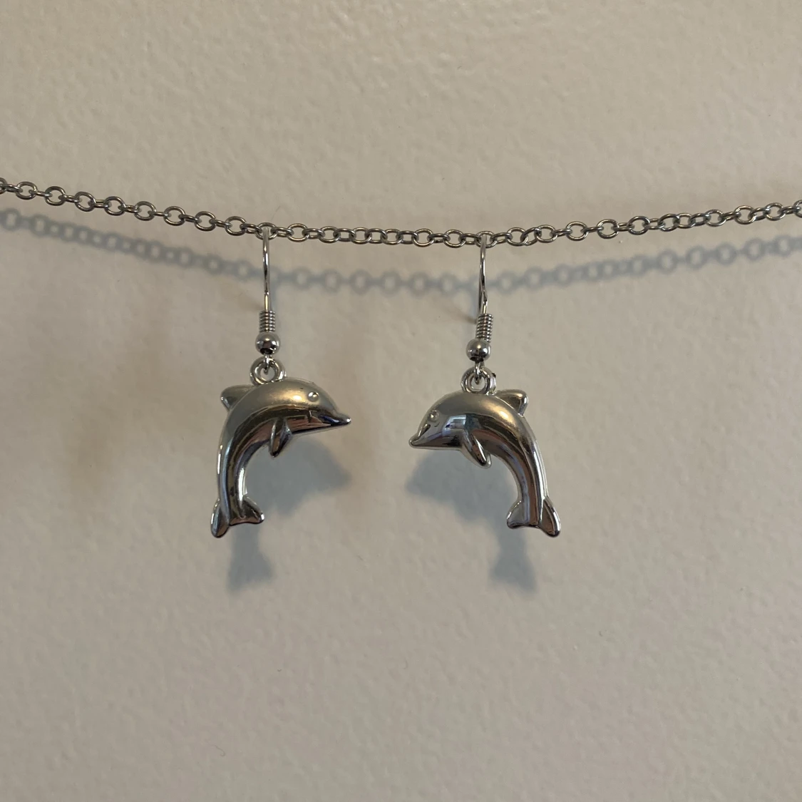 Örhänge med delfinberlock🐬 Handgjord! Stopp medföljer så att örhänget inte ramlar ur. Betalning sker via swish❤️