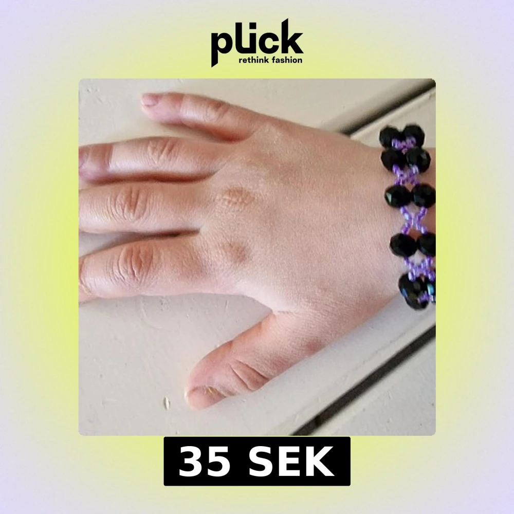 Helt nytt, handgjort barnarmband med attityd! Svarta pärlor möter lila detaljer. Perfekt för 6-8 år som vill sticka ut. Unik design! Anpassar storlek och färger efter dina önskemål! Samfraktar!