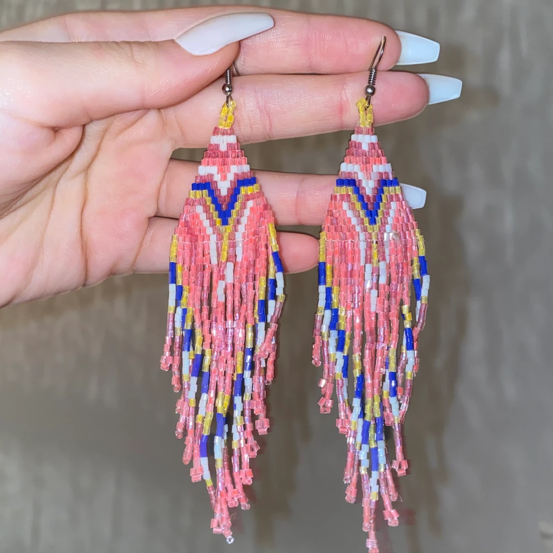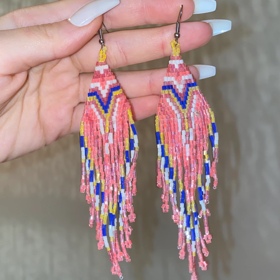 Dessa örhängen har jag gjort för hand, har flera andra men väljer att sälja dessa eftersom jag redan har två andra med rosa som liknar dessa