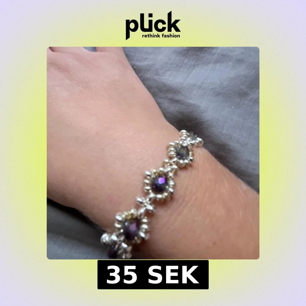 Snyggt armband i silverfärg med och lila glittrande stenar. Perfekt accessoar för att ge din outfit lite extra bling. Armbandet har ett unikt och ungdomligt utseende med små pärlor runt varje sten.handmade ,