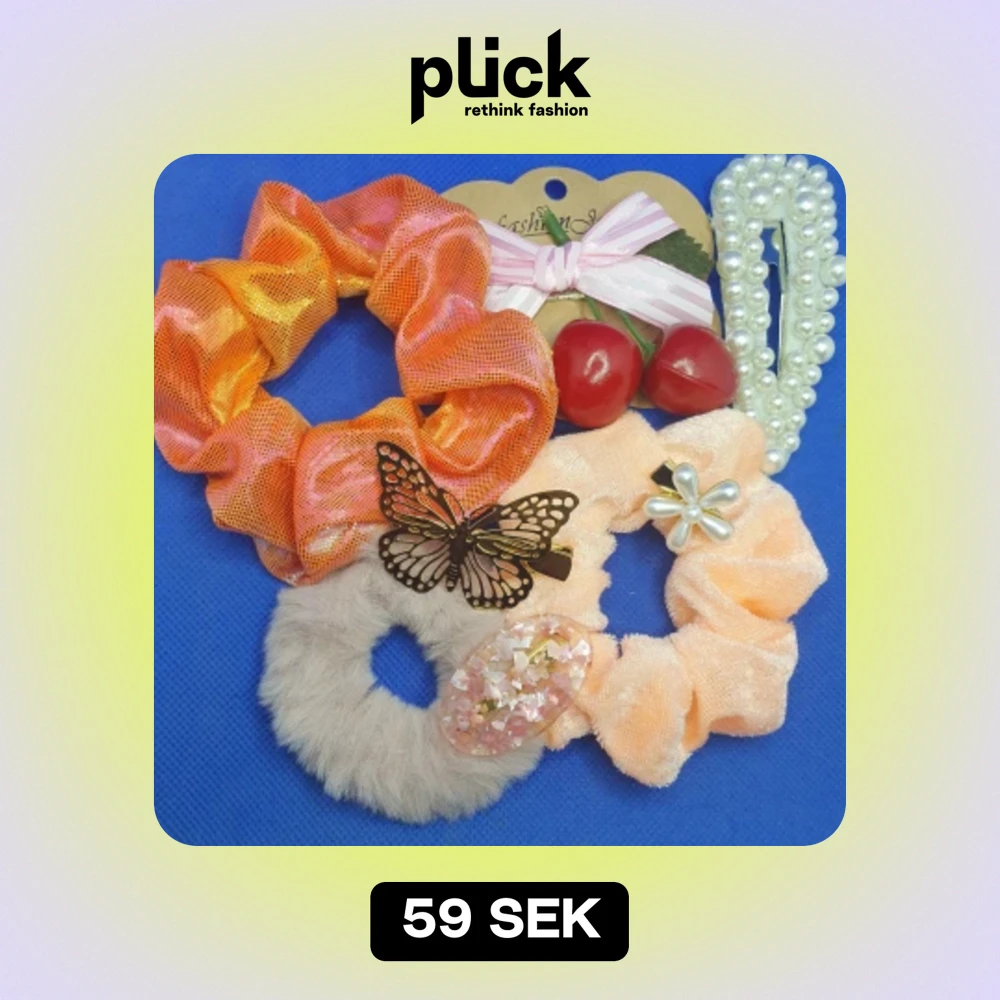 Ett paket med olika hårtillbehör, scrunchies & hårspännen oanvända ✨️Titta igenom alla mina upplagda och köp fler saker i bundle för att spara på frakten och få allt du köpt i ett och samma paket✨️
