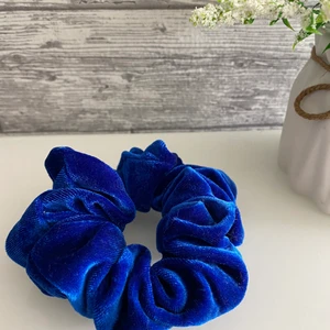 En blå scrunchie, säljes för 10kr. Säljer den då den nästan aldrig har använts💙