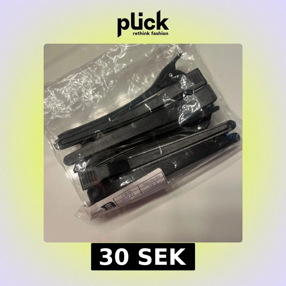 Svarta hårklämmor som är perfekta att använda för att sätta upp papiljotter. Det är 8st och har aldrig använt de.