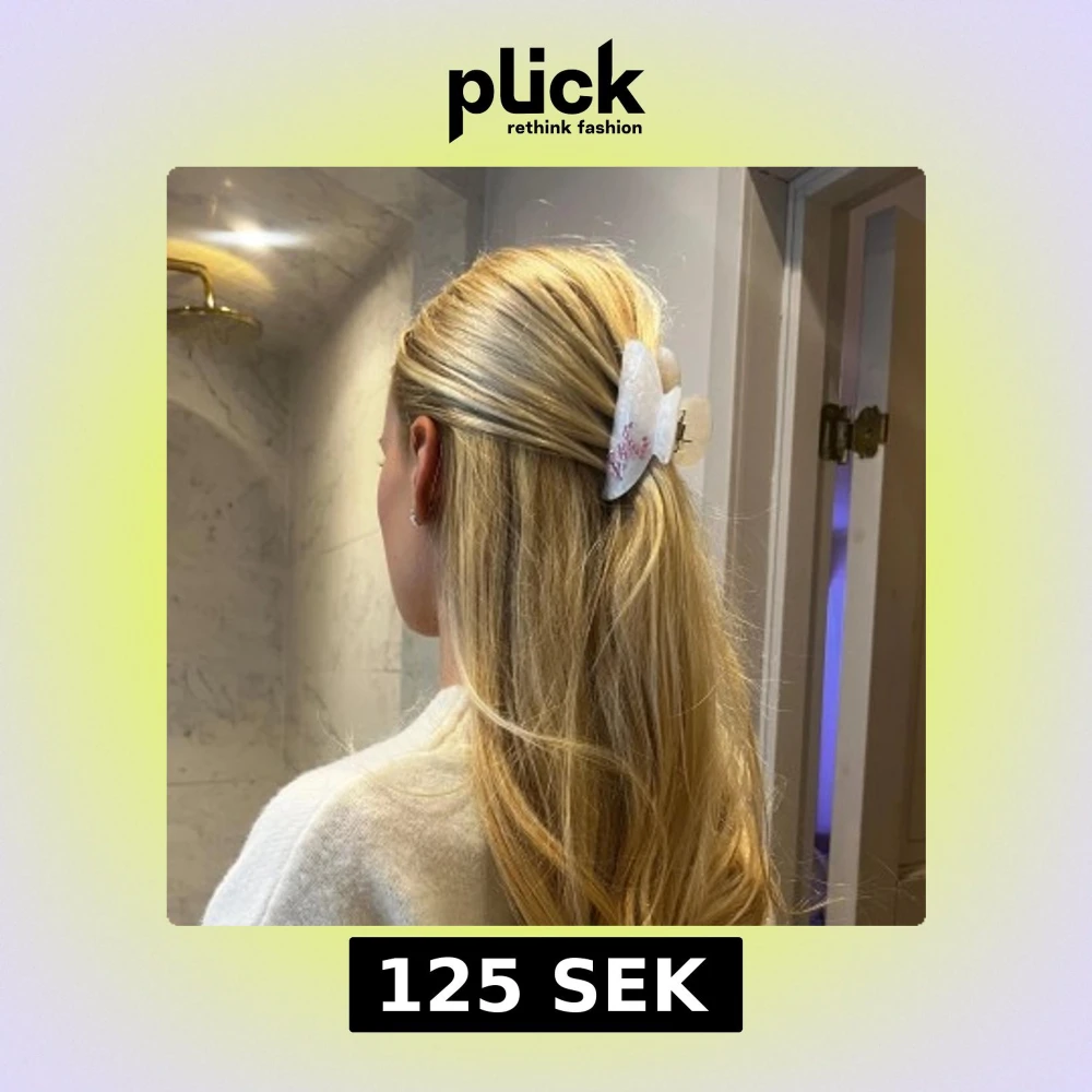 Snygg vit hårklämma med skimrande yta och dekorerad med rosa pärlor som bildar ordet 'Joy' med en söt genomskinlig rosett. Perfekt för att ge en extra touch till din frisyr. Oanvänd, endast testad för bilden!