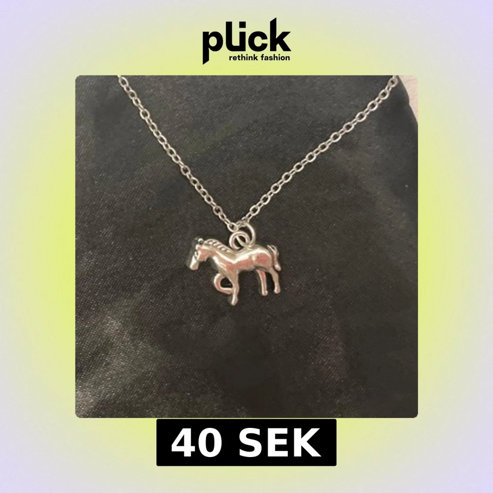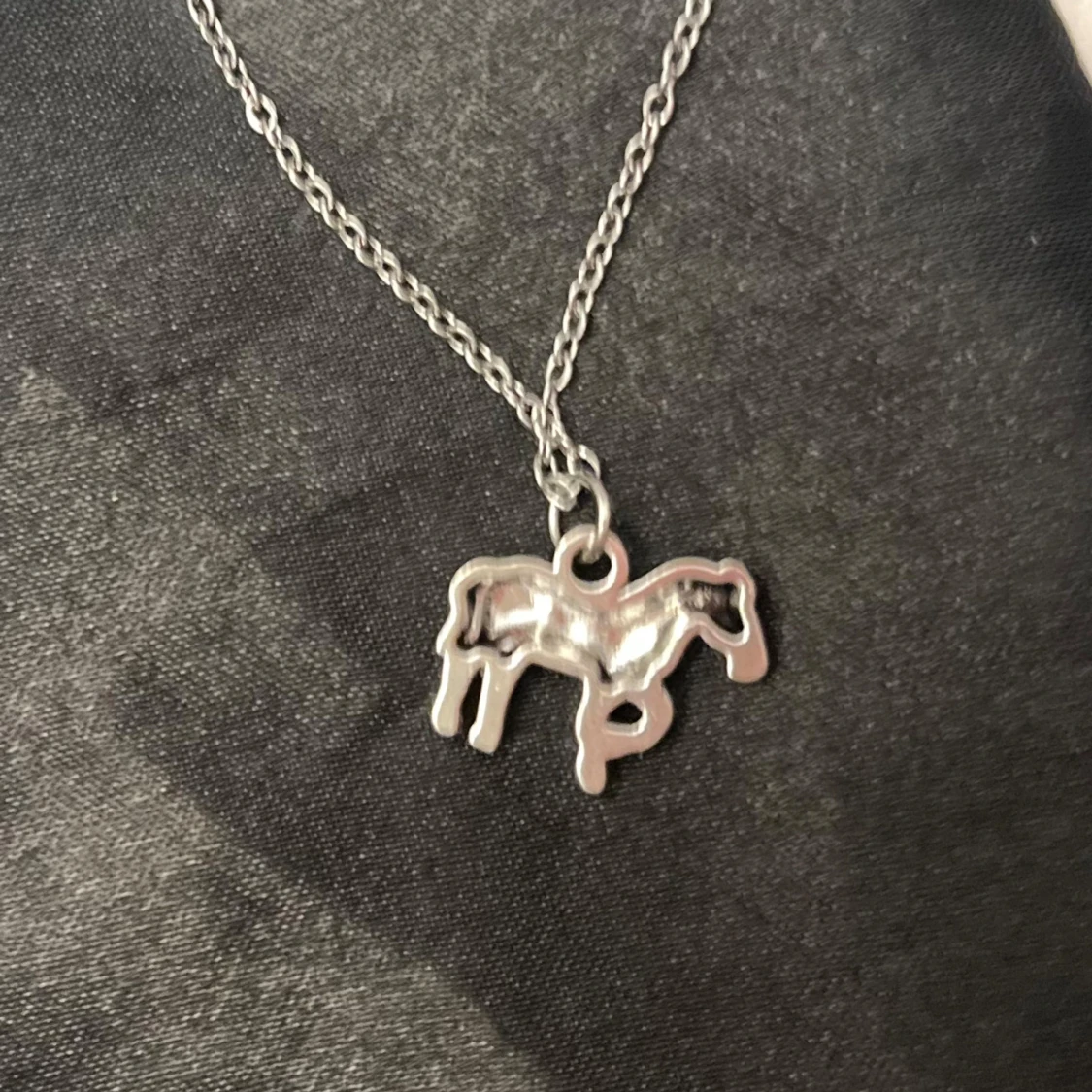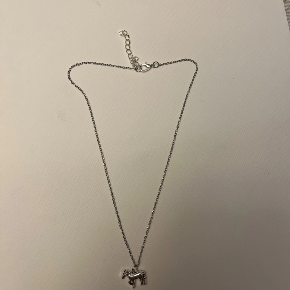 Fint halsband med en berlock i form av en liten häst. Berlocken är ca 1,5 x 1,5 cm. Trädd på kedja i silverimitation som är justerbar 40-45 cm.