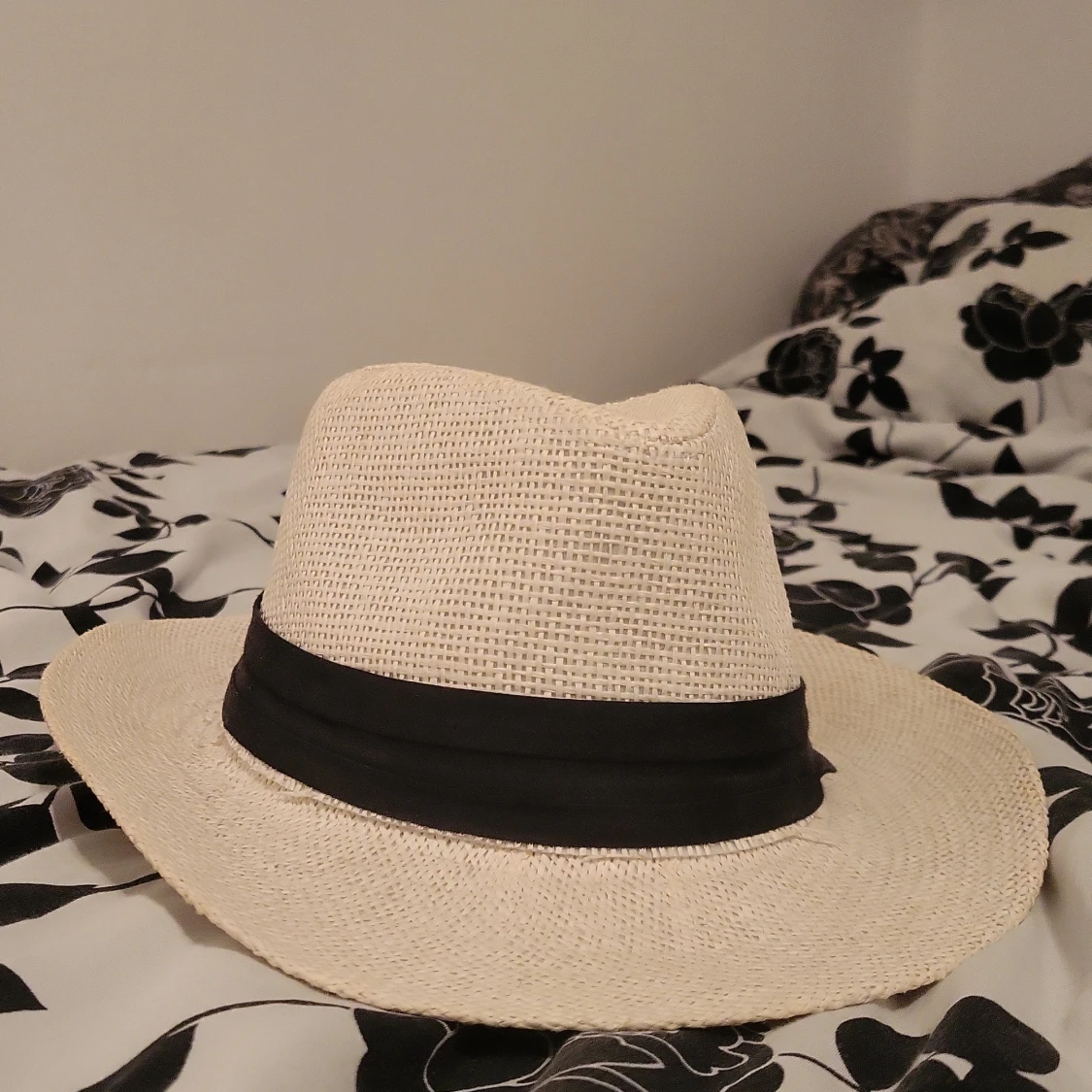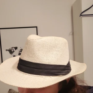 Beige Stråhatt, svart band, one size.