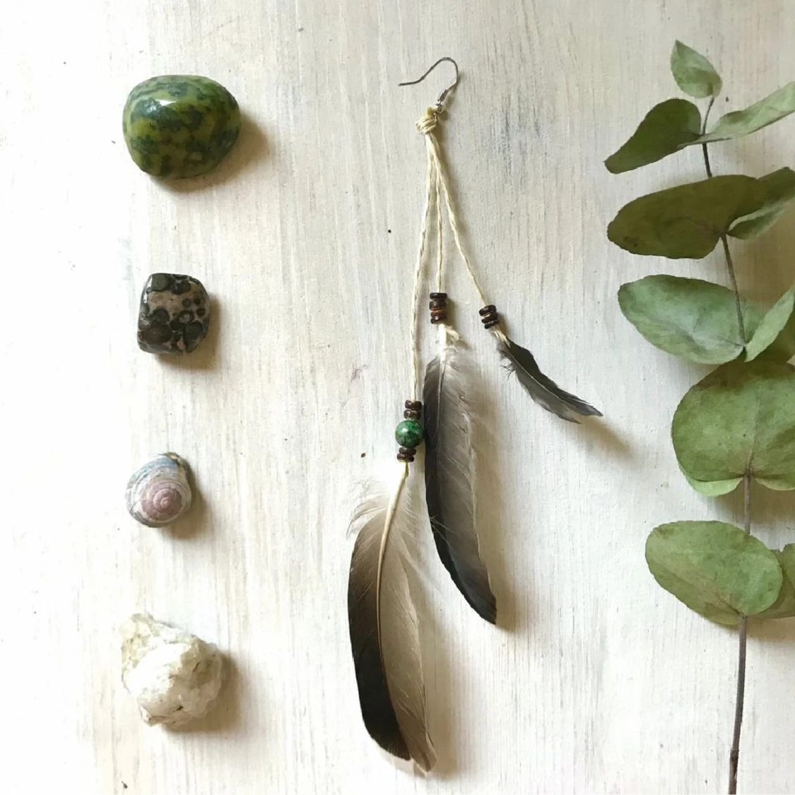 Handmade feather earring (1 earring+rubberstop) 🪶 Feathers from swedish birds, picked with care and love humanely from the ground and then disinfected for your safety. Cruelty free. All earrings are one of a kind! 🦚