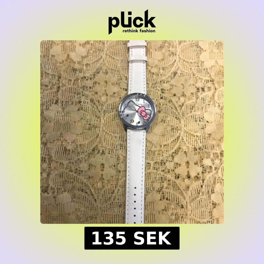Säljer en söt Hello Kitty klocka . silverfärgad urtavla. Urtavlan har en rosa Hello Kitty-bild och tydliga siffror. Perfekt accessoar för dig som gillar gulliga detaljer. Helt ny