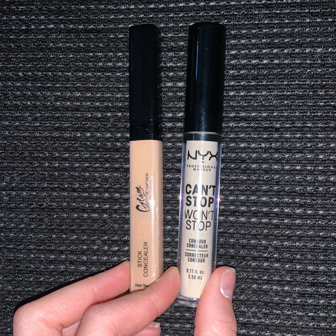 Concealers den längst åt vänster är för 15kr kan sänkas till 10kr om du köper alla tillsammans blir 145kr plus frakt den i mitten för 60 eller 50kr och den längst åt höger är för 50kr jag står inte för postens slarv,