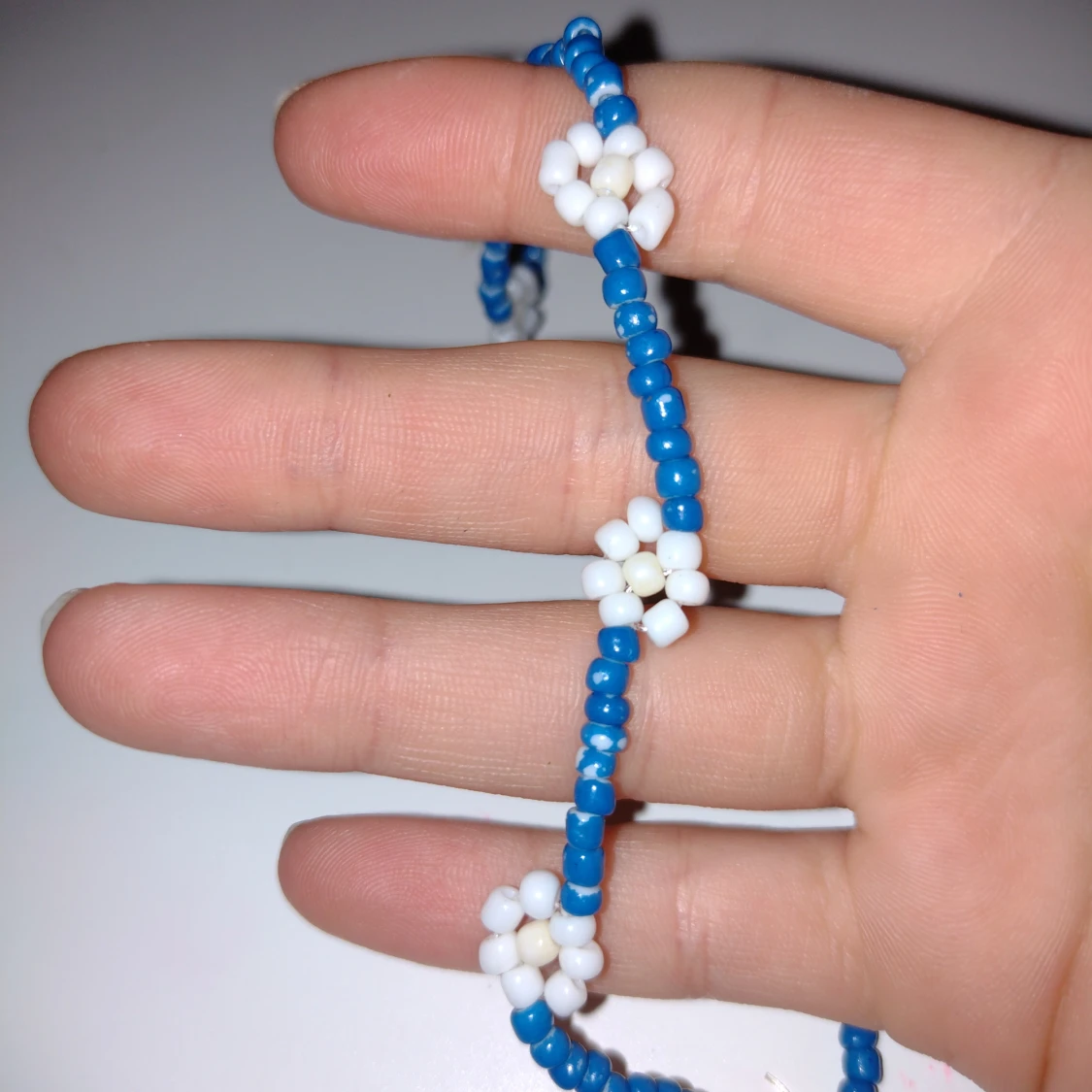 Säljer detta blåa halsbandet med blommor på. Själv tycker jag är väldigt fint och är ganska svårt att göra, gjord för några dagar sen. Hade varit jättetacksam om någon ville köpa 💙
