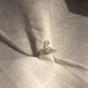 En hemmagjord ring med silvermetall och en metall ros på. Fin att ha till vita, gråa och beicha kläder.