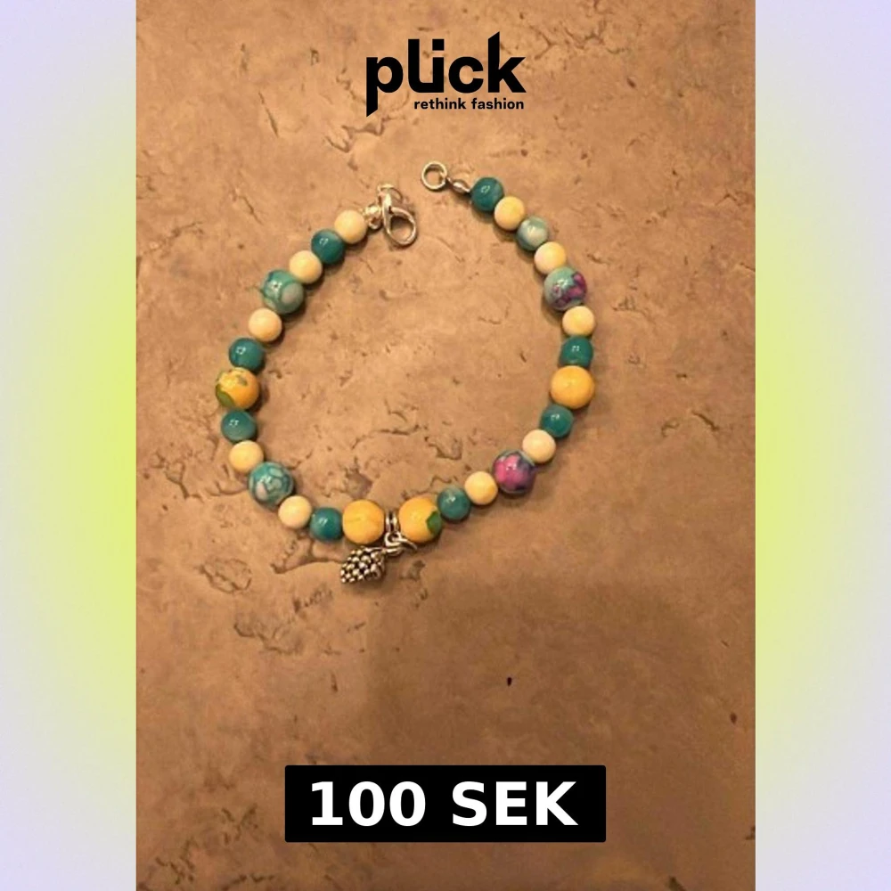 Här har vi har ett armband som jag säljer detta heter ’bluepinkgreenbracelet’