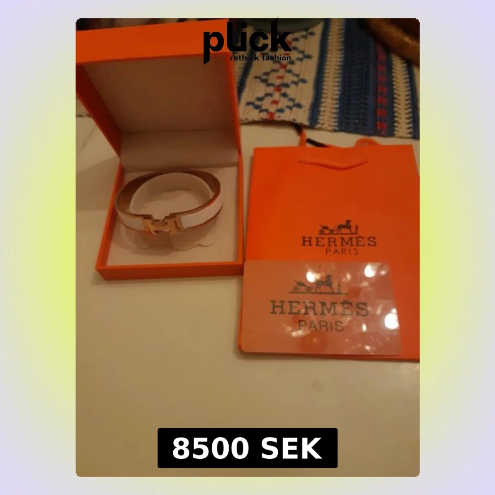 Snyggt vitt armband från Hermès med ikoniskt H-format guldspänne. Armbandet har en elegant och stilren design, levereras i original orange ask och påse. Perfekt accessoar för dig som gillar lyxiga detaljer och klassisk stil.