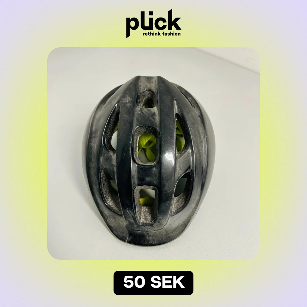 Säljer en svart och vit cykelhjälm i mycket bra skick. Hjälmen har en justerbar passform med gula detaljer på insidan för extra komfort. Perfekt för cykling och andra utomhusaktiviteter. Skydda huvudet med stil!
